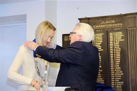 Outgoing President Stuart Rowe, incoming President Christine Fenby.